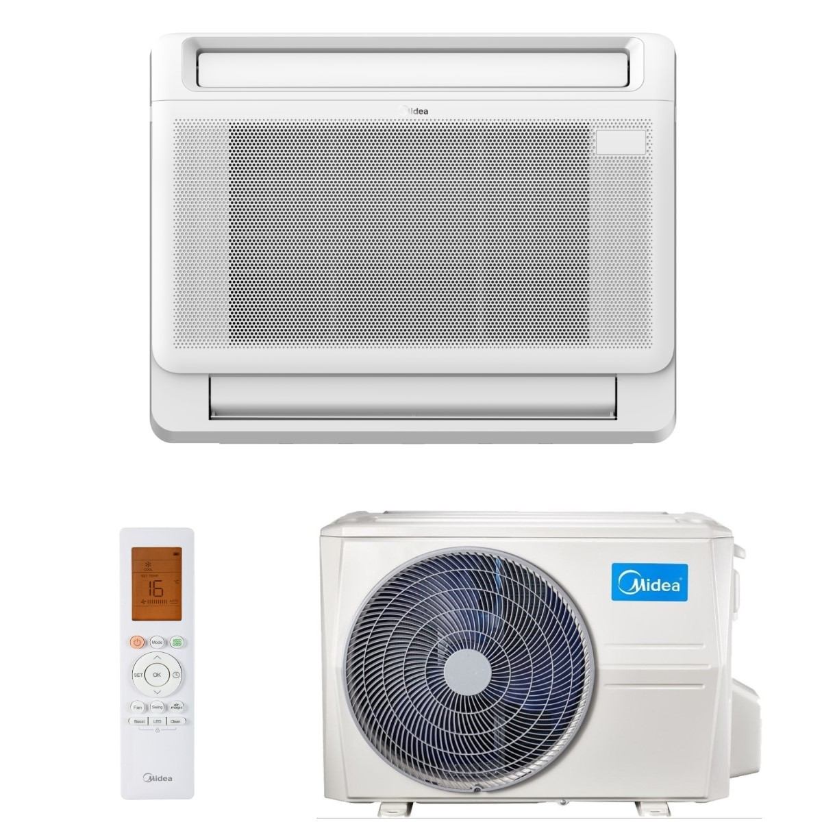 PODNA/PARAPETNA INVERTER – komplet sjajna bijela podna unutarnja i vanjska jedinica Podna unutarnja i vanjska jedinica